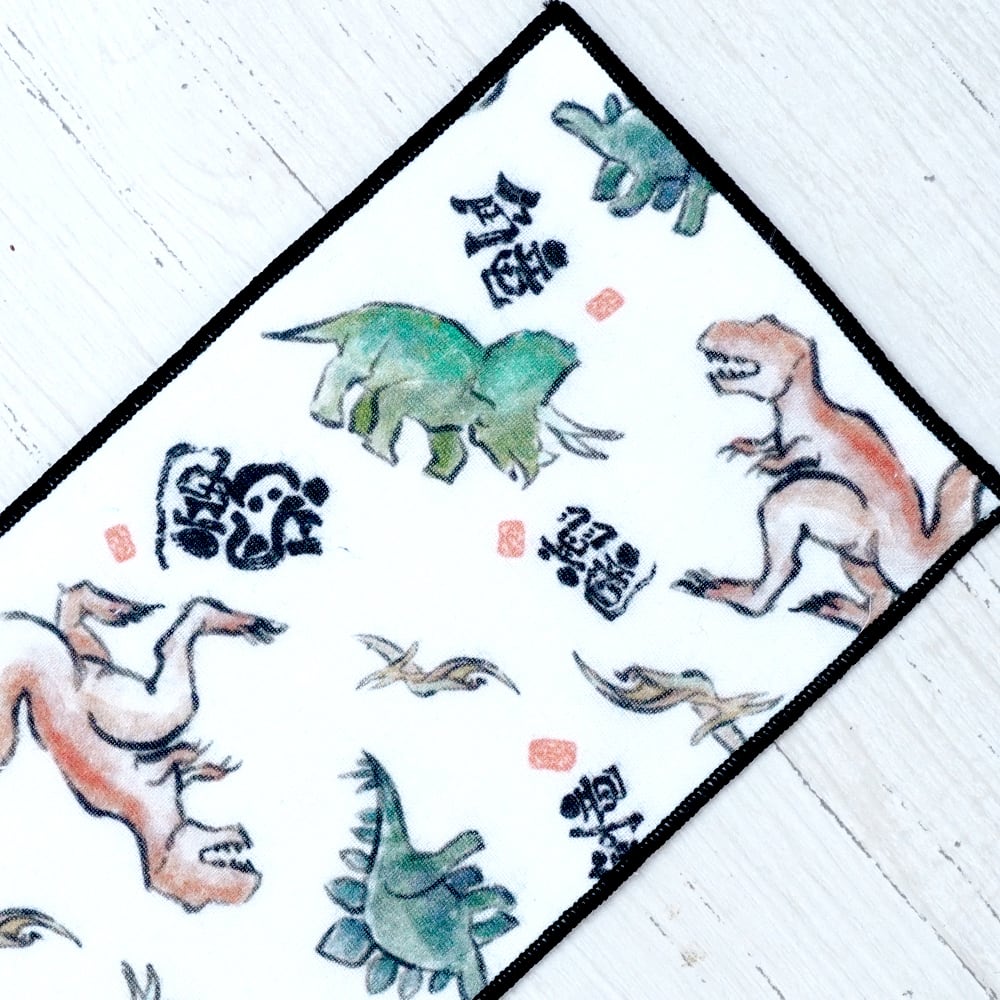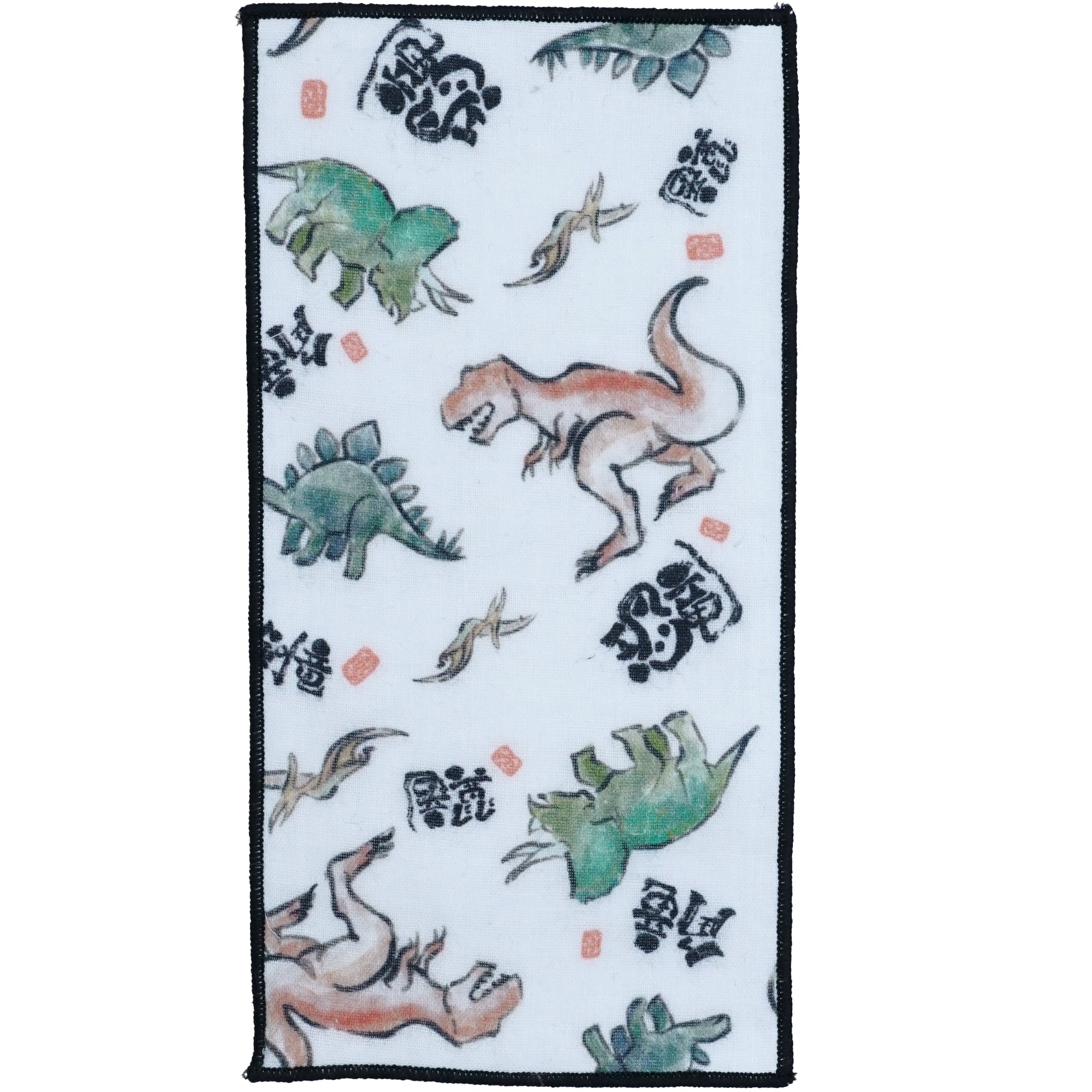 ハンカチ 1枚 綿100% 今治産 タオル生地 ハーフサイズ10.5×20cm おしゃれ 女性 子供 日本製 恐竜 墨絵