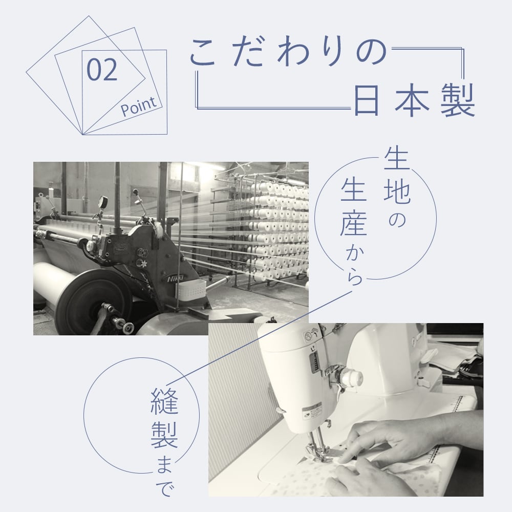 ・生地の生産、カットや縫製もすべて日本で行っています。