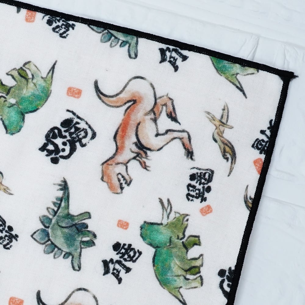 ハンカチ 1枚 綿100% 今治産 タオル生地 スクエアサイズ20×20cm おしゃれ 女性 子供 日本製 恐竜 墨絵