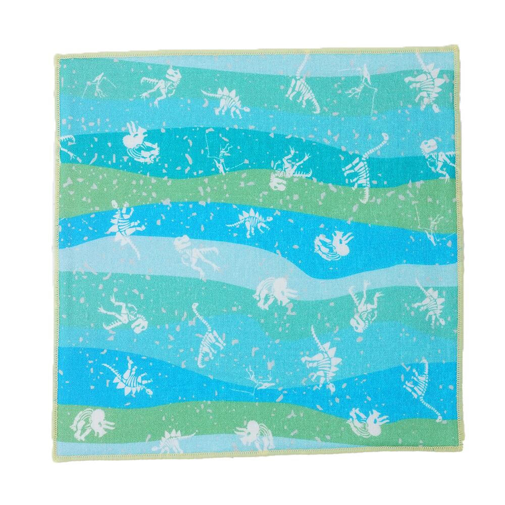 ハンカチ 1枚 綿100% 今治産 タオル生地 スクエアサイズ20×20cm おしゃれ 女性 子供 日本製 恐竜 ボーン ブルー