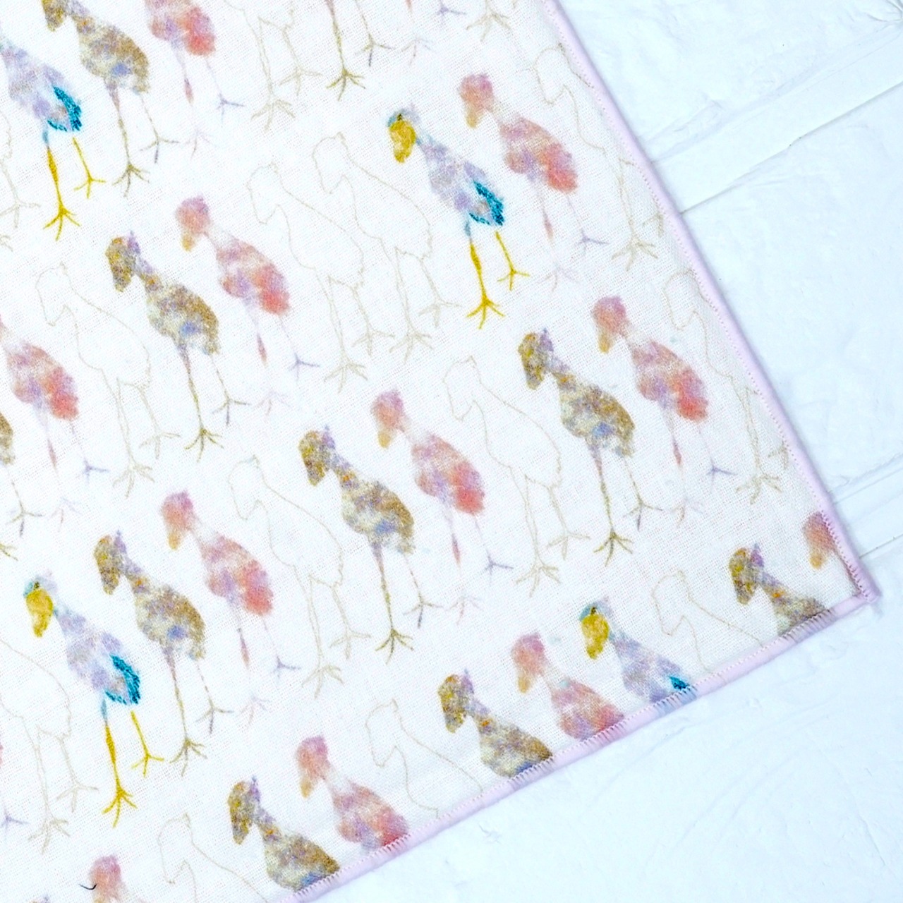ハンカチ 1枚 綿100% 今治産 タオル生地 スクエアサイズ20×20cm おしゃれ 女性 子供 日本製 ハシビロコウ 整列